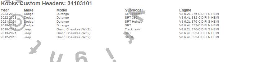 Kooks Custom Headers - Off Road Connection Pipes P/N 34103101 Features: