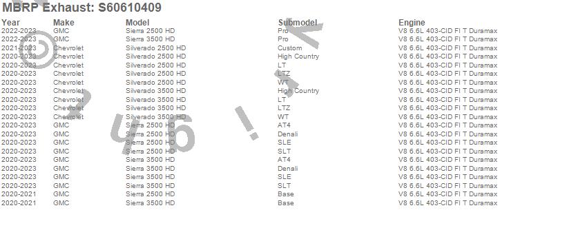 Below is an abbreviated list of applications for the Armor Plus Filter Back Exhaust System.