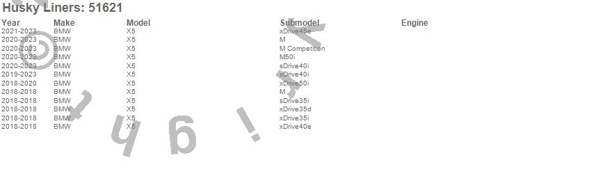 Below is an abbreviated list of applications for the X-act Contour Floor Liner.
