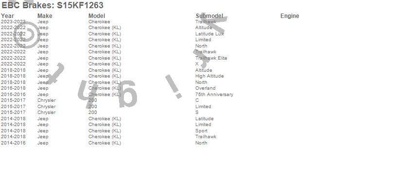 Below is an abbreviated list of applications for the S15 Kit Extra Duty and USR Rotors.