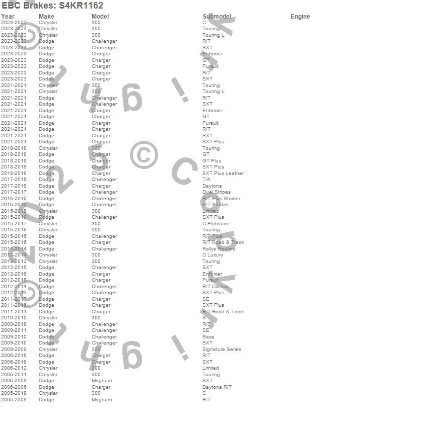 Below is an abbreviated list of applications for the S4 Kits Redstuff and USR Rotor.