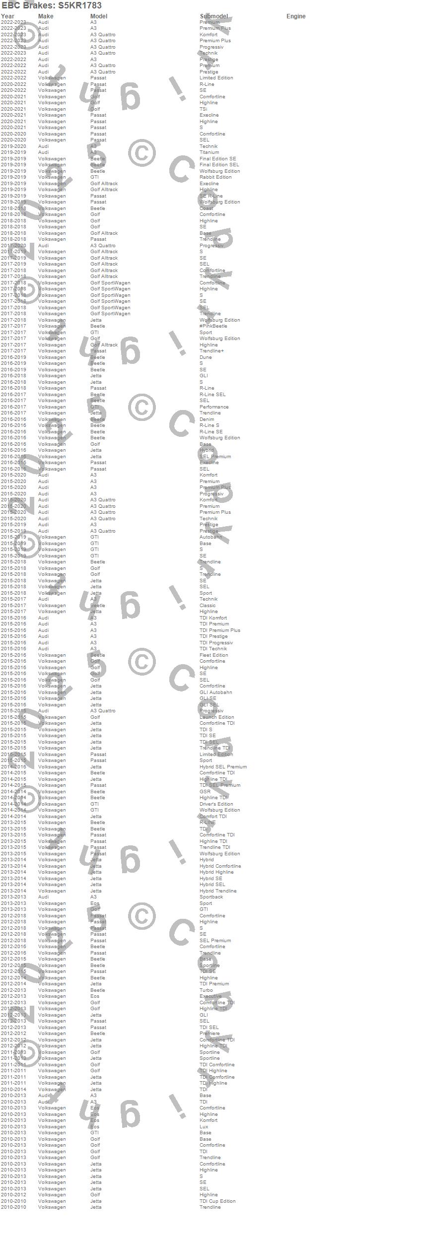 Below is an abbreviated list of applications for the S5 Kits Yellowstuff And GD Rotors.