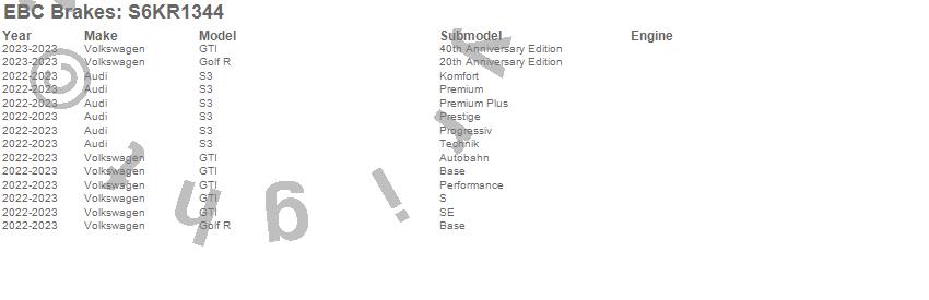 Below is an abbreviated list of applications for the S6 Kits Bluestuff and GD Rotors.