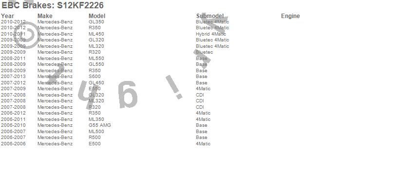 Below is an abbreviated list of applications for the S12 Kits Redstuff and RK Rotors.