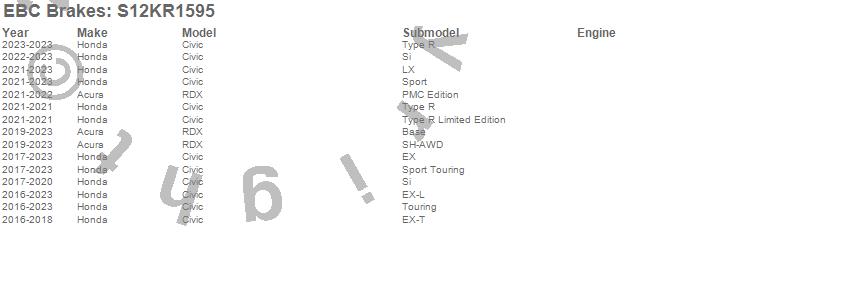 Below is an abbreviated list of applications for the S12 Kits Redstuff and RK Rotors.