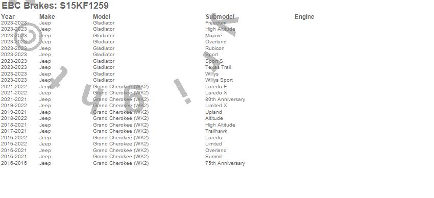 Below is an abbreviated list of applications for the S15 Kit Extra Duty and USR Rotors.