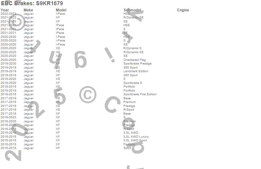 Below is an abbreviated list of applications for the S9 Kits Yellowstuff and USR Rotors.
