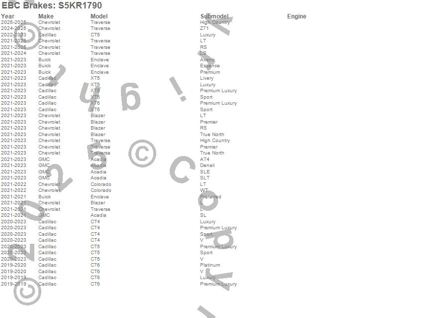 Below is an abbreviated list of applications for the S5 Kits Yellowstuff And GD Rotors.