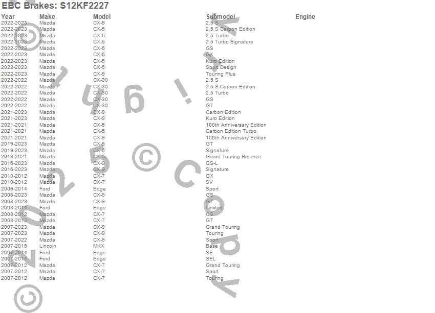 Below is an abbreviated list of applications for the S12 Kits Redstuff and RK Rotors.