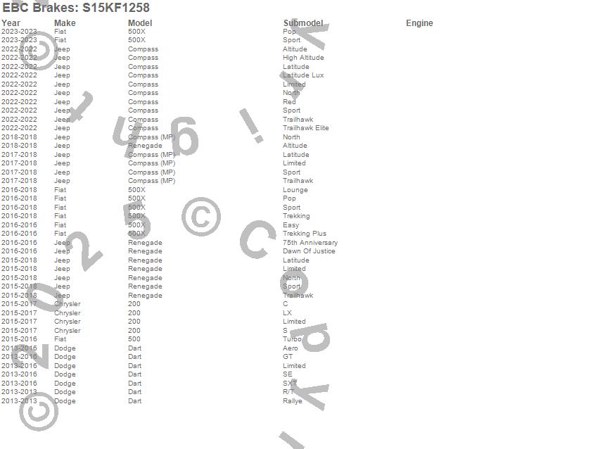 Below is an abbreviated list of applications for the S15 Kit Extra Duty and USR Rotors.