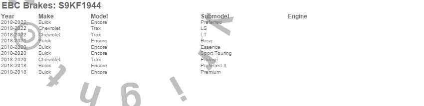 Below is an abbreviated list of applications for the S9 Kits Yellowstuff and USR Rotors.