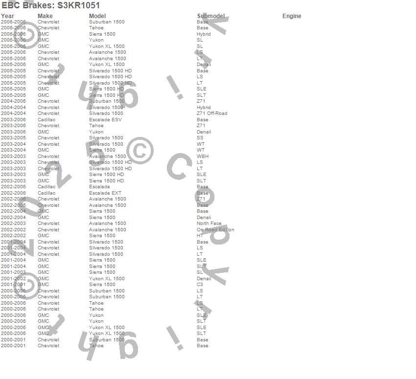 Below is an abbreviated list of applications for the S3 Kits Greenstuff 6000 and GD Rotors Truck/SUV.