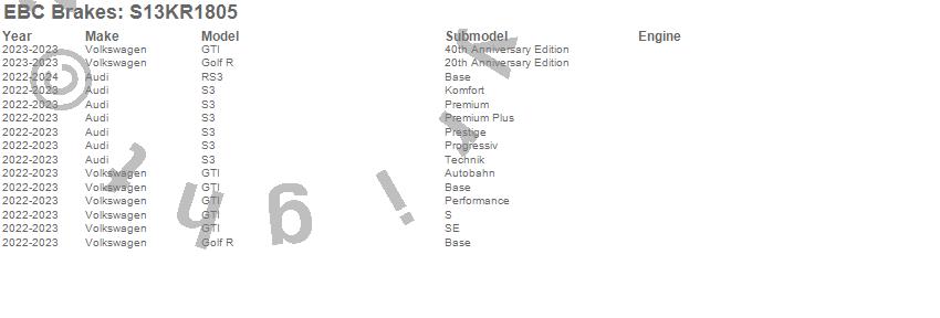 Below is an abbreviated list of applications for the S13 Kits Yellowstuff and RK Rotors.