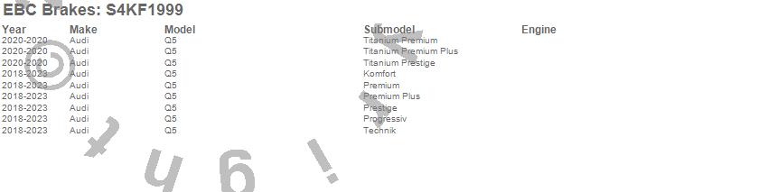 Below is an abbreviated list of applications for the S4 Kits Redstuff and USR Rotor.