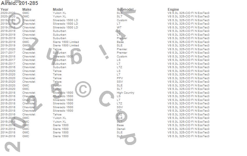 Sierra 1500, Sierra 1500 Limited, Silverado 1500, Silverado 1500 LD, Suburban, Tahoe, Yukon, Yukon XL, Chevrolet, GMC, 2020, 2019, 2018, 2017, 2016, 2015, 2014