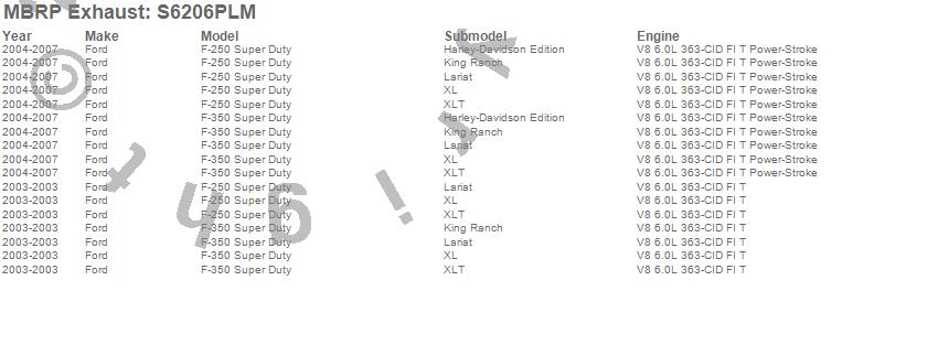 Below is an abbreviated list of applications for the Armor Lite Turbo Back Exhaust System.
