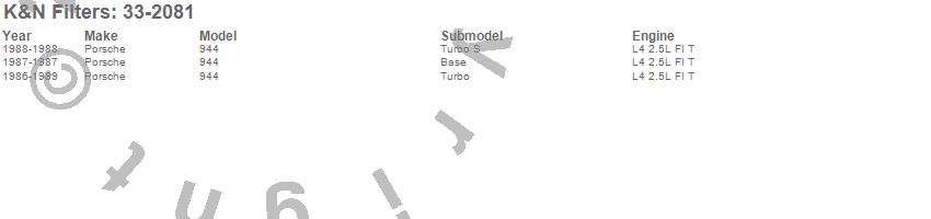Below is an abbreviated list of applications for the Air Filter.