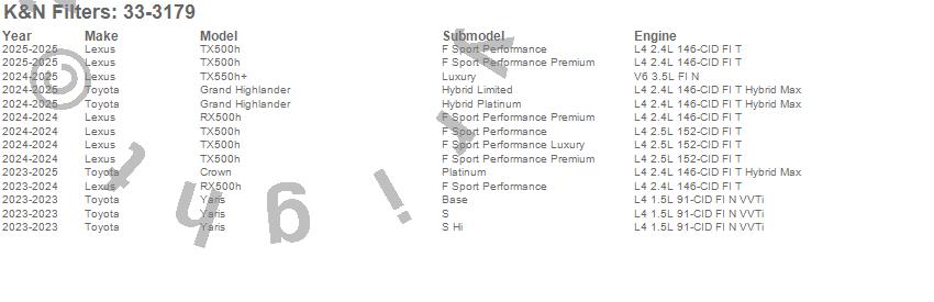 K&N Filters - Air Filter P/N 33-3179 Features: