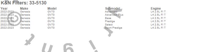 Below is an abbreviated list of applications for the Air Filter.