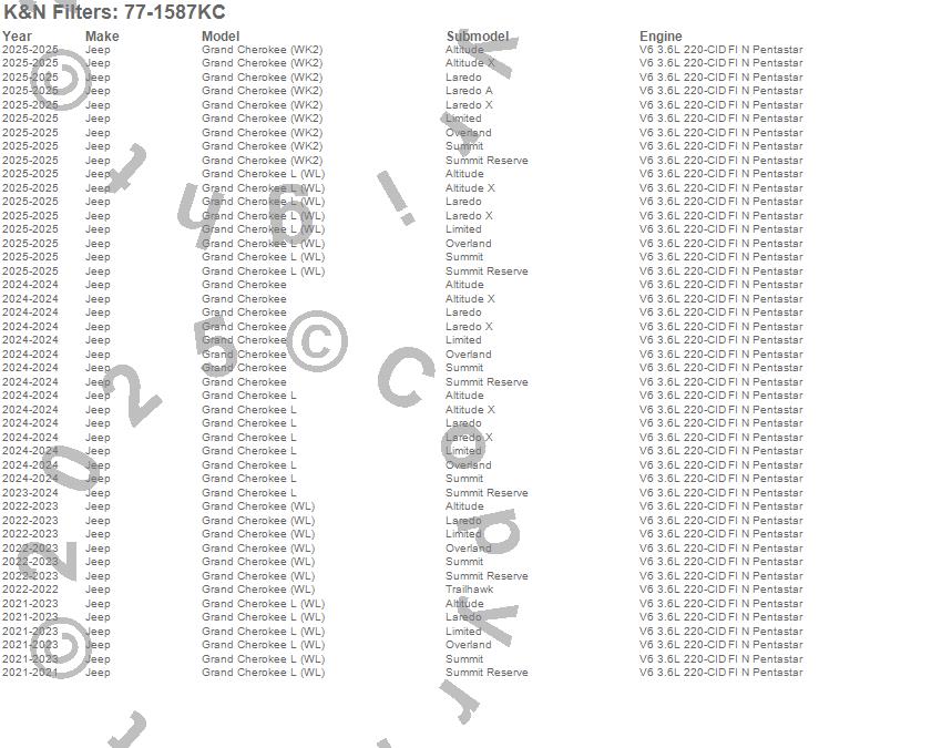 Grand Cherokee, Grand Cherokee (WK2), Grand Cherokee (WL), Grand Cherokee L, Grand Cherokee L (WL), Jeep, 2025, 2024, 2023, 2022, 2021