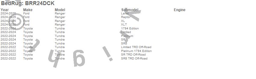 Below is an abbreviated list of applications for the BedRug Truck Bed Liner.