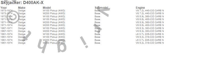 W100 Pickup, W200 Pickup, Dodge, 1974, 1973, 1972, 1971, 1970, 1969, 1968, 1967, 1966, 1965, 1964, 1963, 1962, 1961