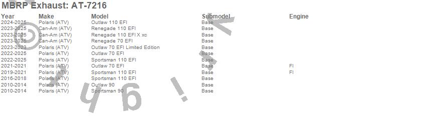Below is an abbreviated list of applications for the ATV Exhaust System With Utility Muffler.