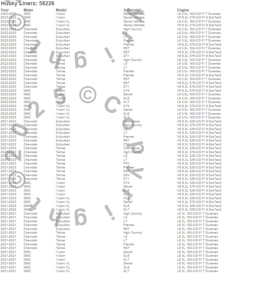 Husky Liners - Custom Molded Mud Guards P/N 58226 Features: