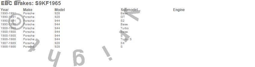 Below is an abbreviated list of applications for the S9 Kits Yellowstuff and USR Rotors.