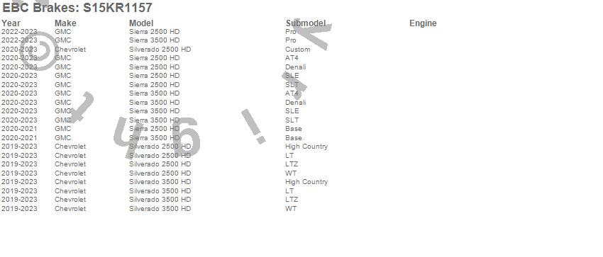 Below is an abbreviated list of applications for the S15 Kit Extra Duty and USR Rotors.