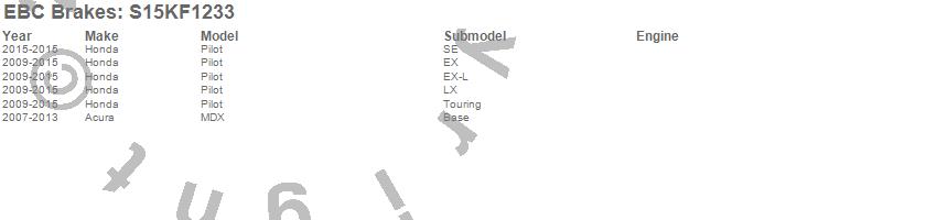 Below is an abbreviated list of applications for the S15 Kit Extra Duty and USR Rotors.