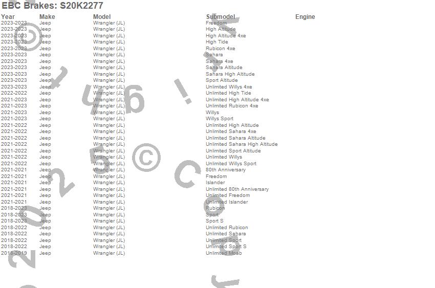 Below is an abbreviated list of applications for the S20 Kits Ultimax and Plain Rotors.