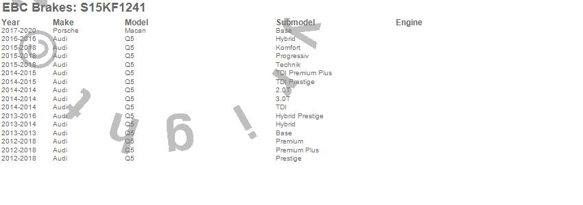 Below is an abbreviated list of applications for the S15 Kit Extra Duty and USR Rotors.