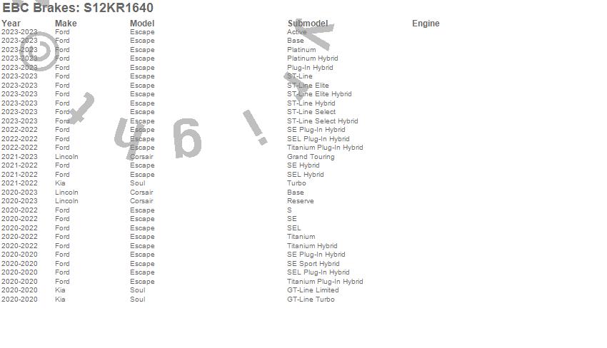 Below is an abbreviated list of applications for the S12 Kits Redstuff and RK Rotors.