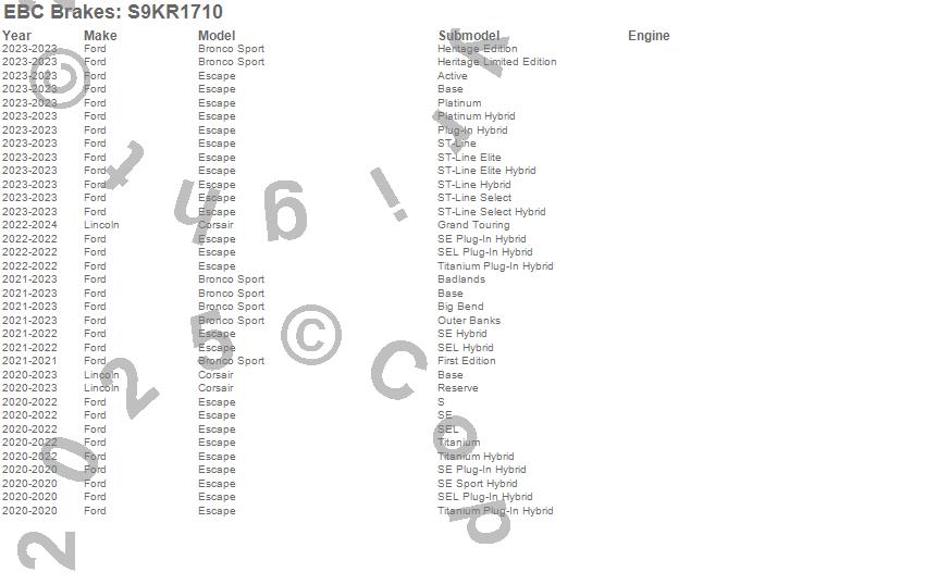 Below is an abbreviated list of applications for the S9 Kits Yellowstuff and USR Rotors.