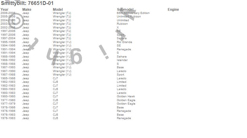 CJ5, CJ7, Wrangler (TJ), Wrangler (YJ), Jeep, 2006, 2005, 2004, 2003, 2002, 2001, 2000, 1999, 1998, 1997, 1995, 1994, 1993, 1992, 1991