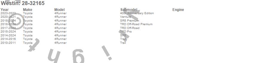 4Runner, Toyota, 2024, 2023, 2022, 2021, 2020, 2019, 2018, 2017, 2016, 2015, 2014, 2011, 2010