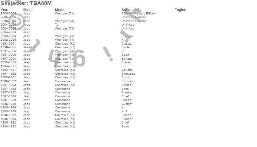 Cherokee (XJ), Comanche, TJ, Wrangler (TJ), Jeep, 2006, 2005, 2004, 2003, 2002, 2001, 2000, 1999, 1998, 1997, 1996, 1995, 1994, 1993, 1992