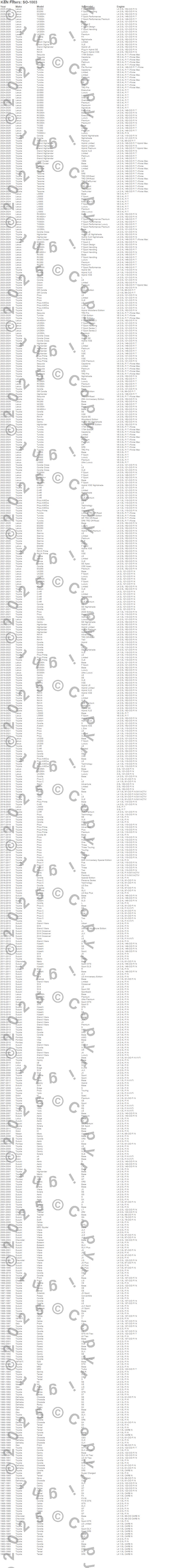 Below is an abbreviated list of applications for the Oil Filter.