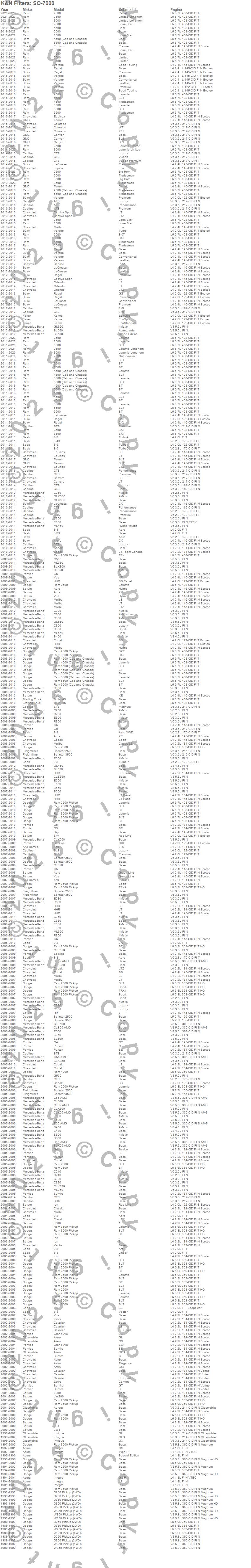 Below is an abbreviated list of applications for the Oil Filter.