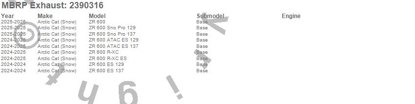 Below is an abbreviated list of applications for the Snowmobile Race Exhaust.
