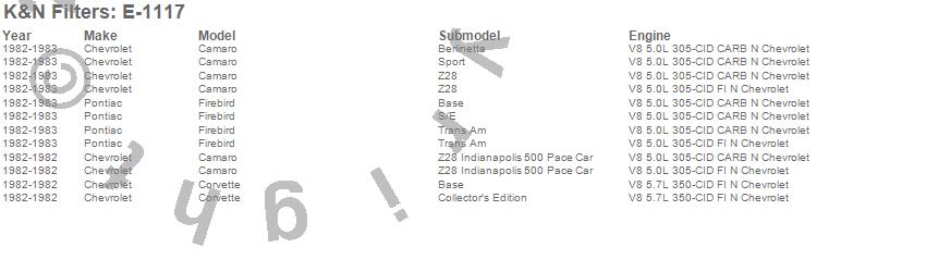 Below is an abbreviated list of applications for the Air Filter.
