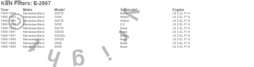 Below is an abbreviated list of applications for the Air Filter.