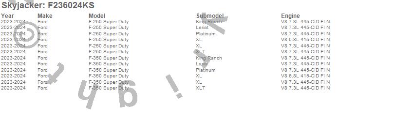 Skyjacker - Suspension Lift Kit P/N F236024KS Features:
