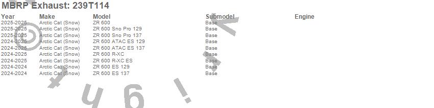 Below is an abbreviated list of applications for the Snowmobile Trail Exhaust.