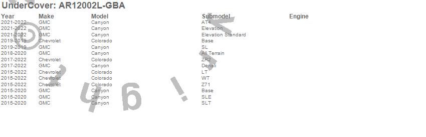 UnderCover - UnderCover Fusion P/N AR12002L-GBA Features: