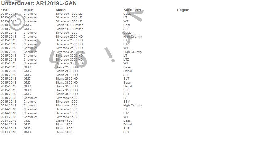 UnderCover - UnderCover Fusion P/N AR12019L-GAN Features:
