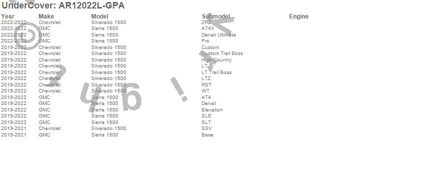 UnderCover - UnderCover Fusion P/N AR12022L-GPA Features: