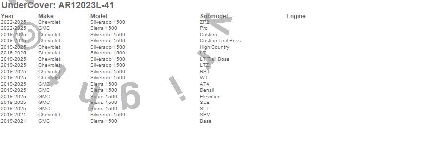 UnderCover - UnderCover Fusion P/N AR12023L-41 Features: