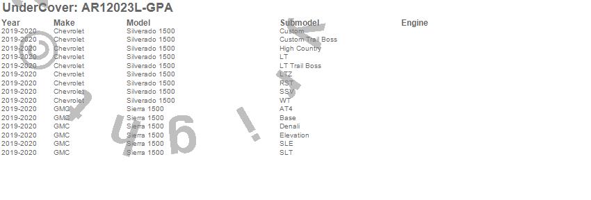UnderCover - UnderCover Fusion P/N AR12023L-GPA Features: